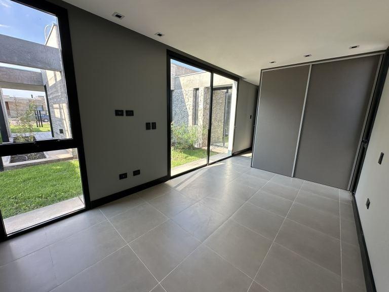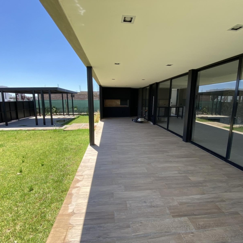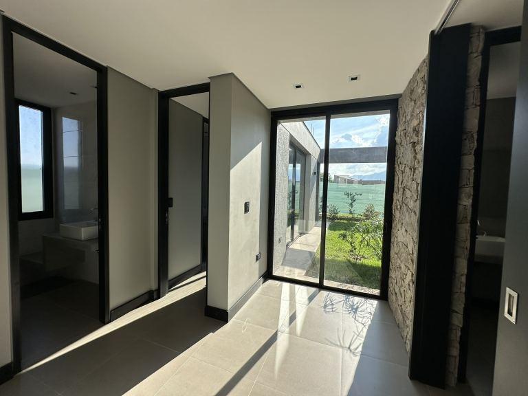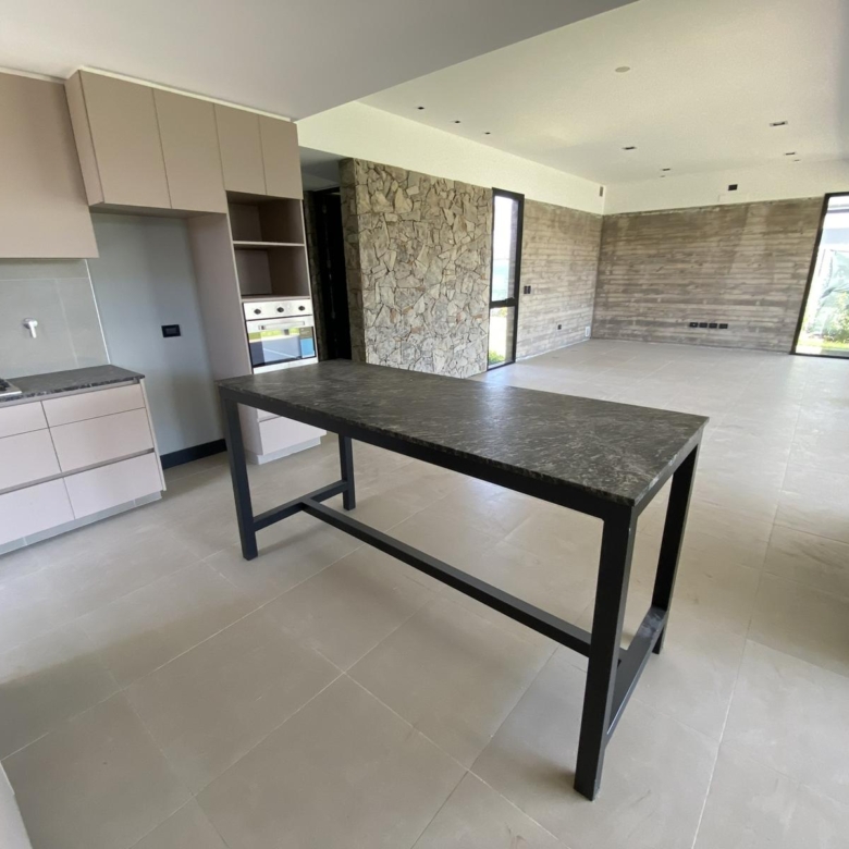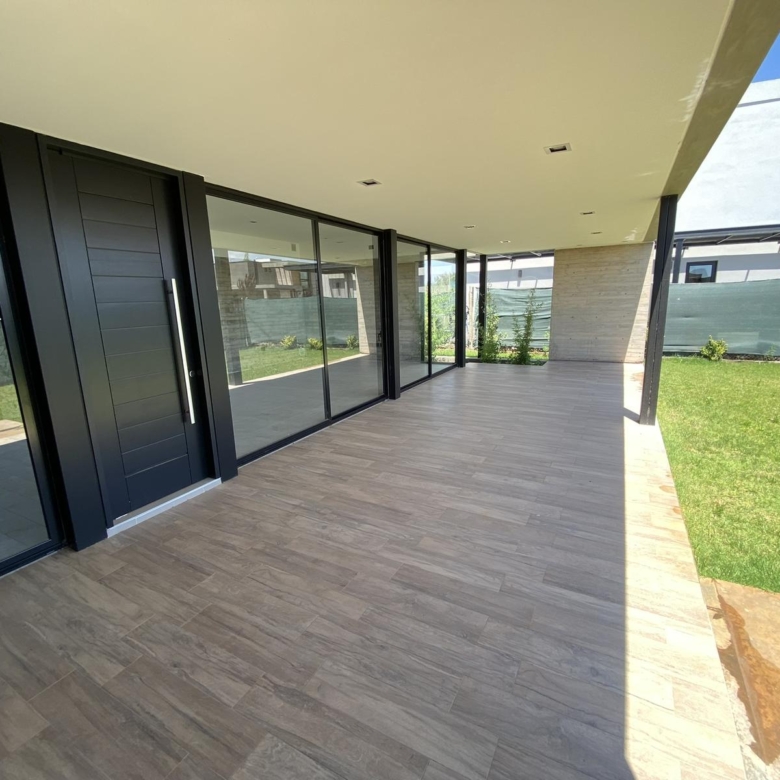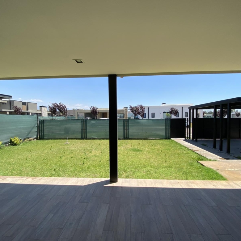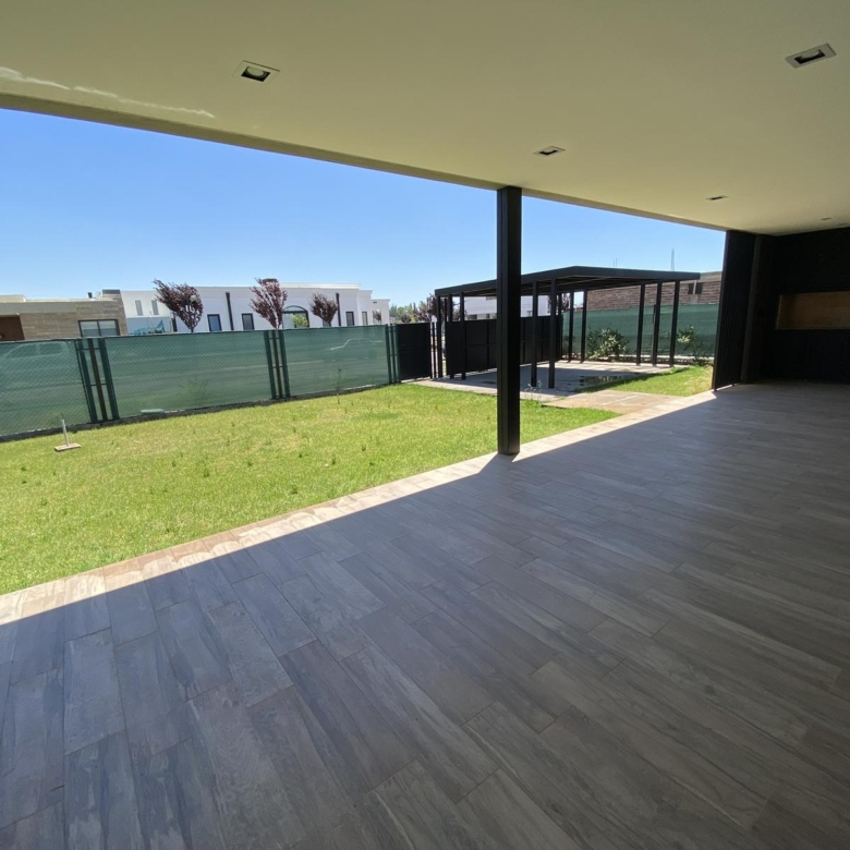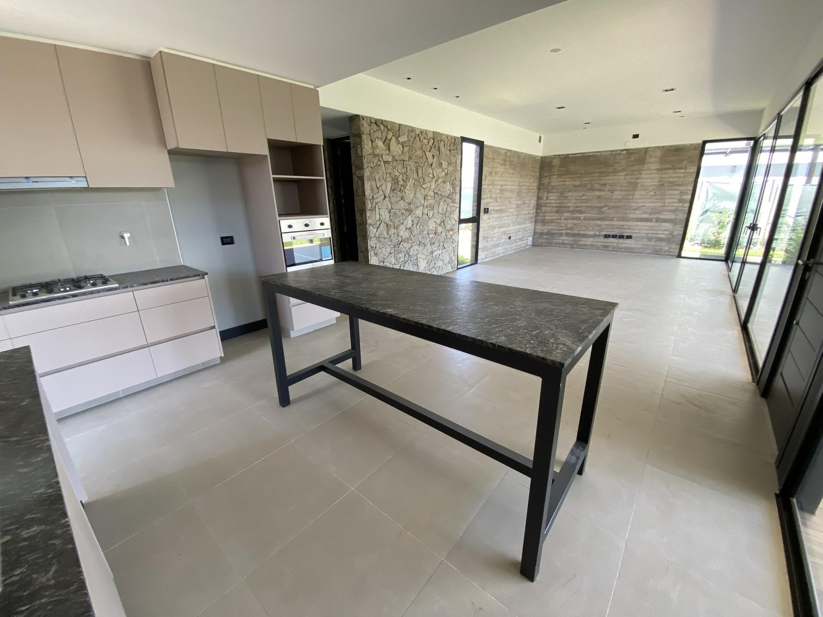 La casa se ubica en el lote 35 de la Manzana A, cuenta con un proyecto minimalista con detalles en piedra mucha visual de su jardin construida de una planta, que cuenta con un amplio estar comedor , cocina con amoblamiento, lavadero separado, toilette, patio tendedero, 3 dormitorios con placares, el principal con vestidor y en suite, y un tercer baño para los otros dos dormitorios, posee galería al mismo nivel de piso que el estar para permitir al abrir sus aberturas comunicar los dos espacios, estos ambientes poseen vista al jardín y cuenta con una cochera para dos vehículos a la par.