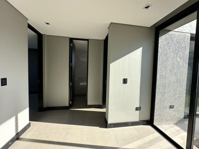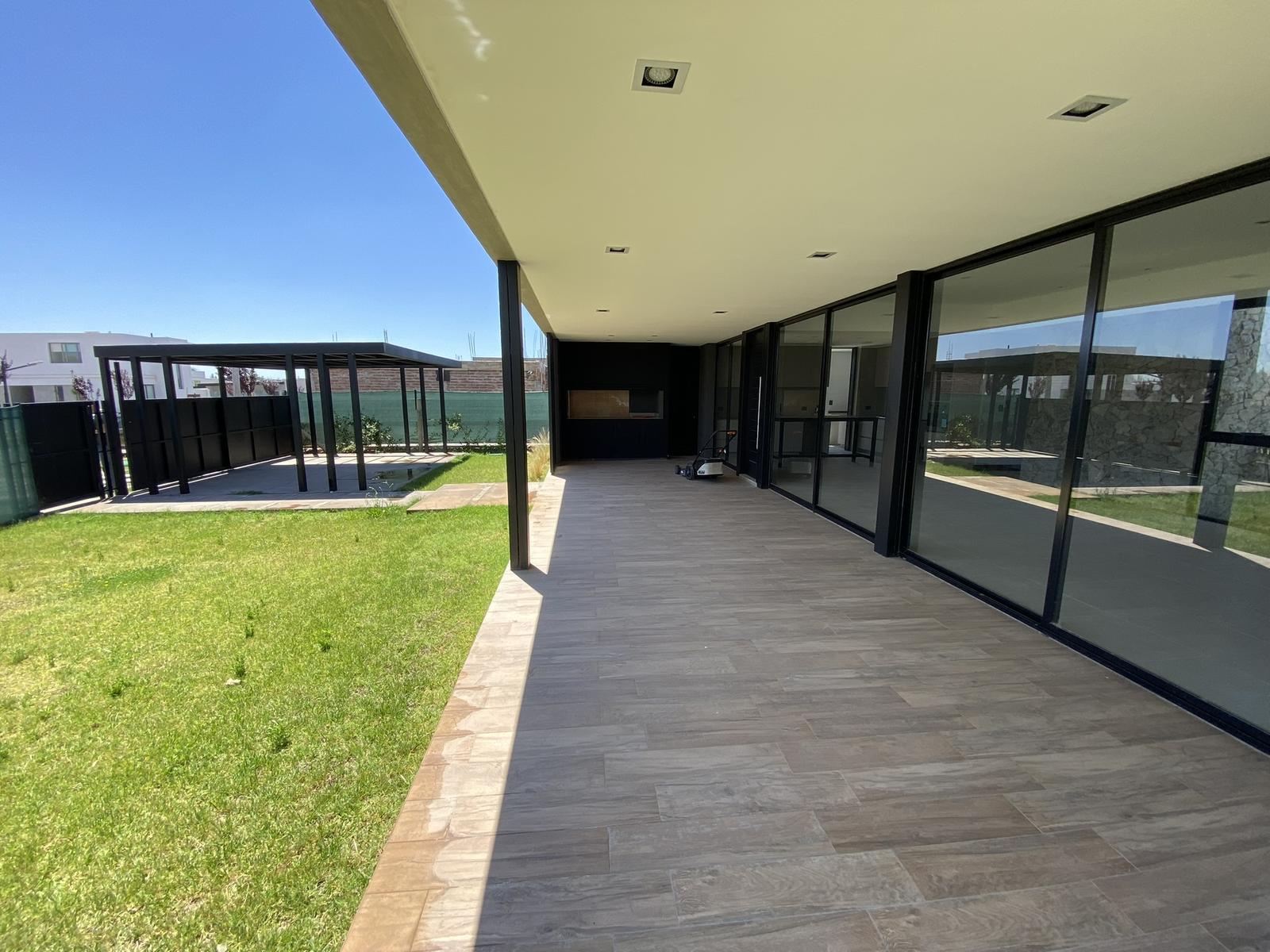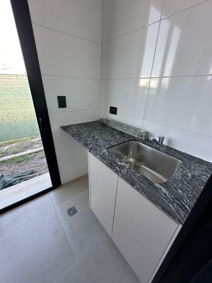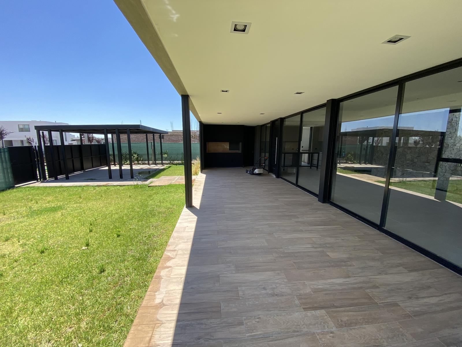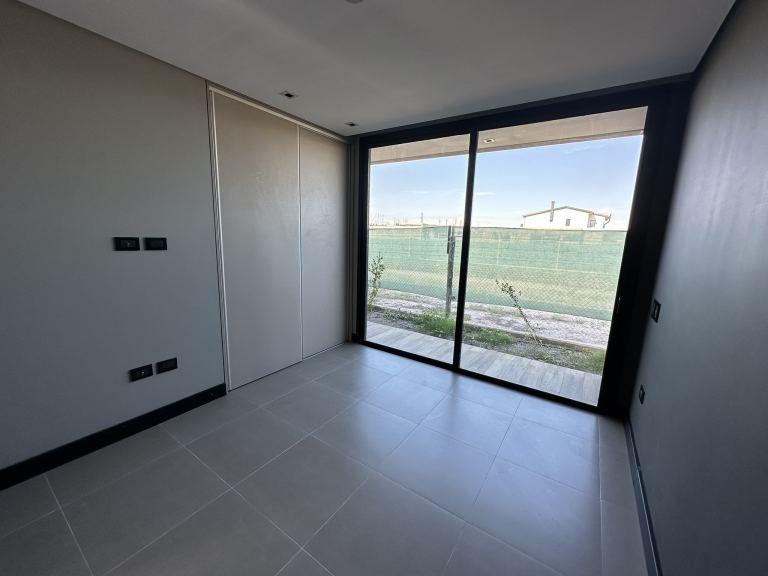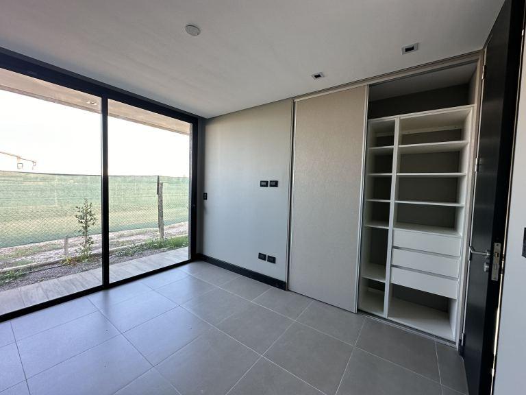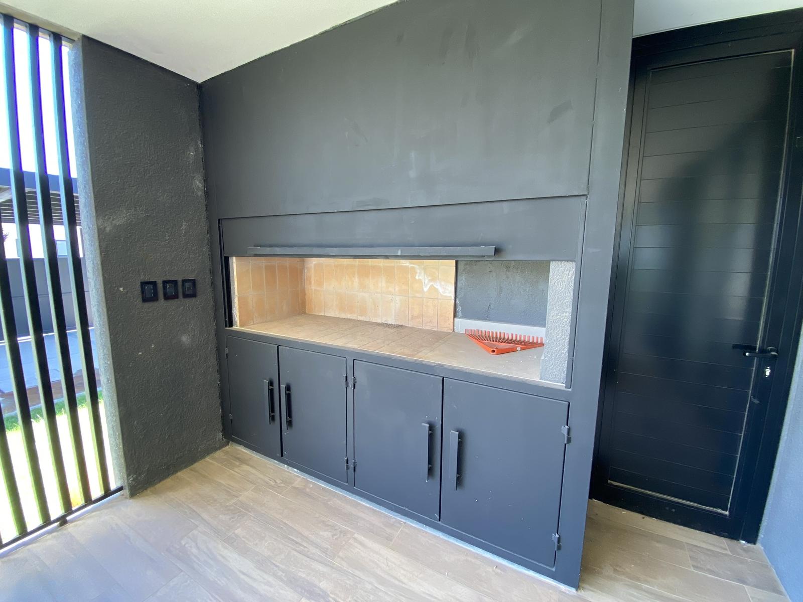 La casa se ubica en el lote 35 de la Manzana A, cuenta con un proyecto minimalista con detalles en piedra mucha visual de su jardin construida de una planta, que cuenta con un amplio estar comedor , cocina con amoblamiento, lavadero separado, toilette, patio tendedero, 3 dormitorios con placares, el principal con vestidor y en suite, y un tercer baño para los otros dos dormitorios, posee galería al mismo nivel de piso que el estar para permitir al abrir sus aberturas comunicar los dos espacios, estos ambientes poseen vista al jardín y cuenta con una cochera para dos vehículos a la par.
