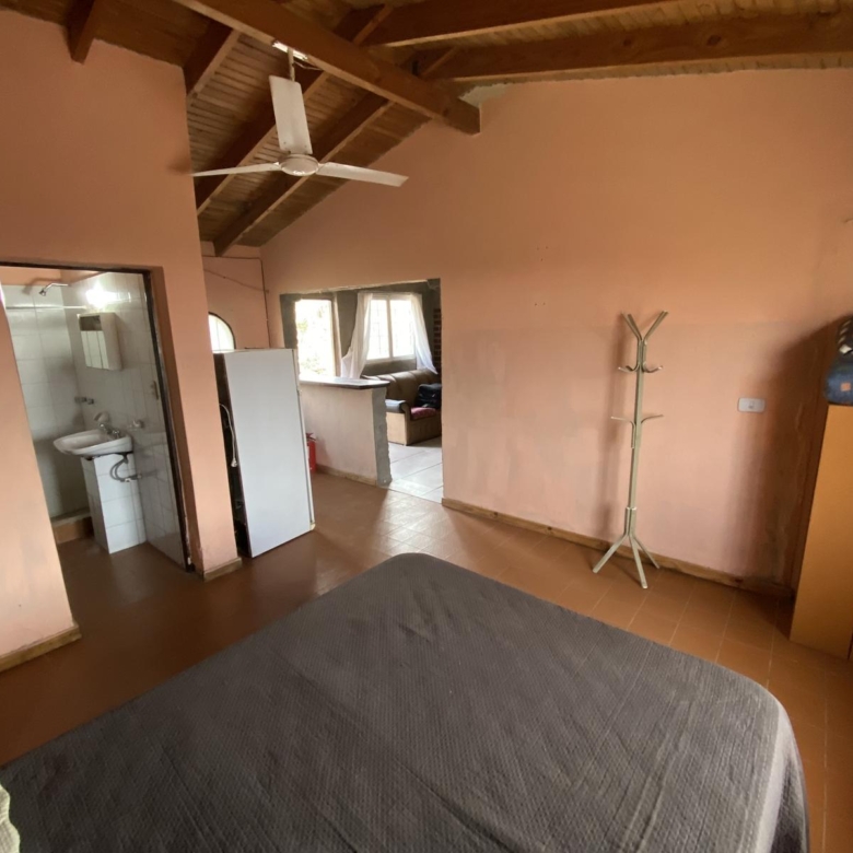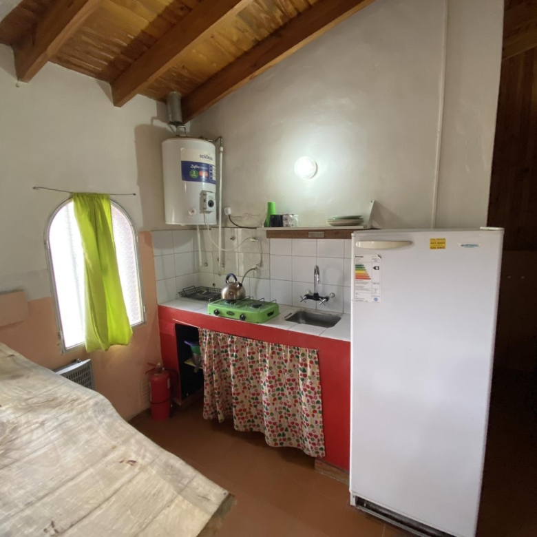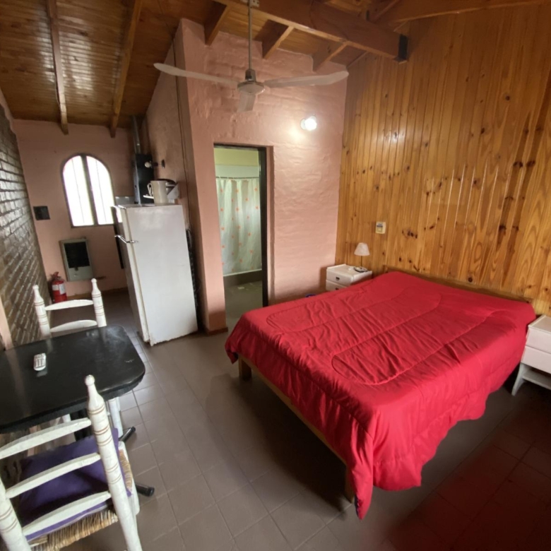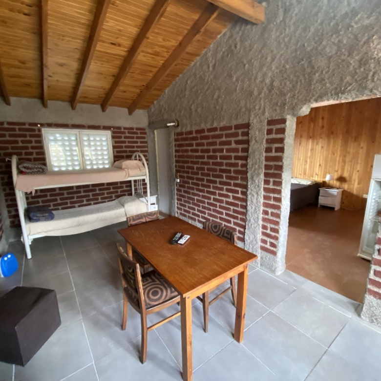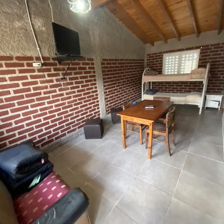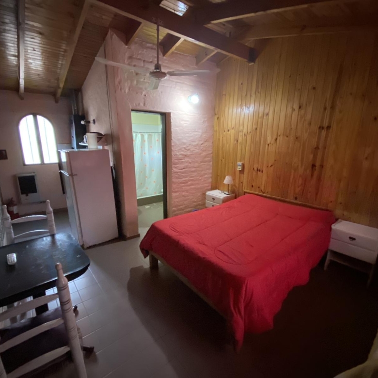 Cabaña 2: Monoambiente, 1 Dormitorio, 1 baño y cochera, cocina, calefón instantáneo