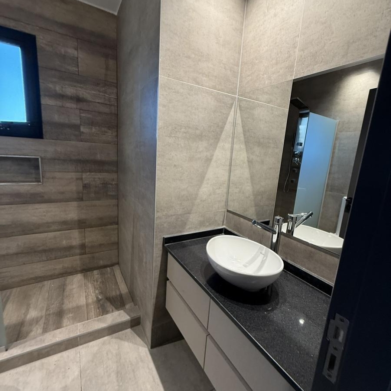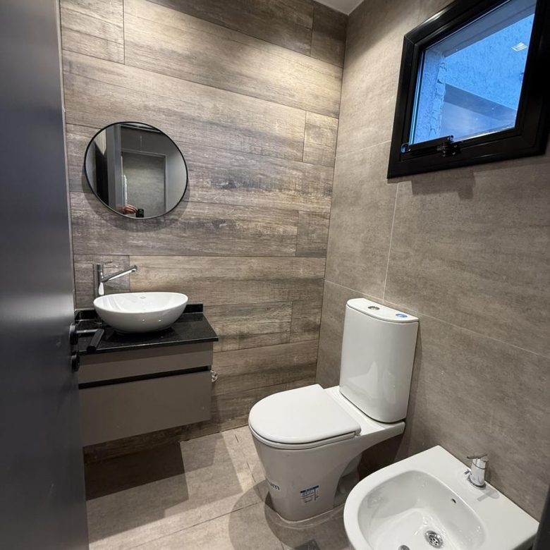 La vivienda dispone de cuatro baños, calefacción central por losa radiante y carpintería con doble vidrio, garantizando confort térmico y calidad constructiva.