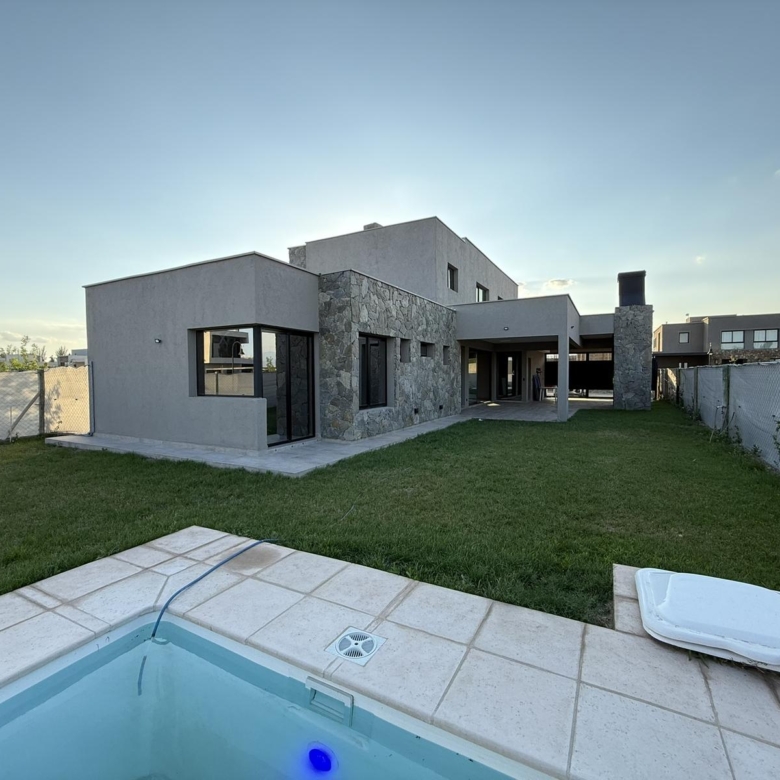 En planta baja se desarrolla el área social principal, con un gran living comedor equipado con hogar a leña, cocina integrada con desayunador y salida a una galería con churrasquera. El exterior cuenta con un jardín parquizado con riego por aspersión y piscina, ideal para el disfrute al aire libre. En este nivel también se encuentra una suite principal de aproximadamente 50 m², con vestidor y baño privado, además de lavandería independiente con patio tender y cochera doble con capacidad para hasta cuatro vehículos.