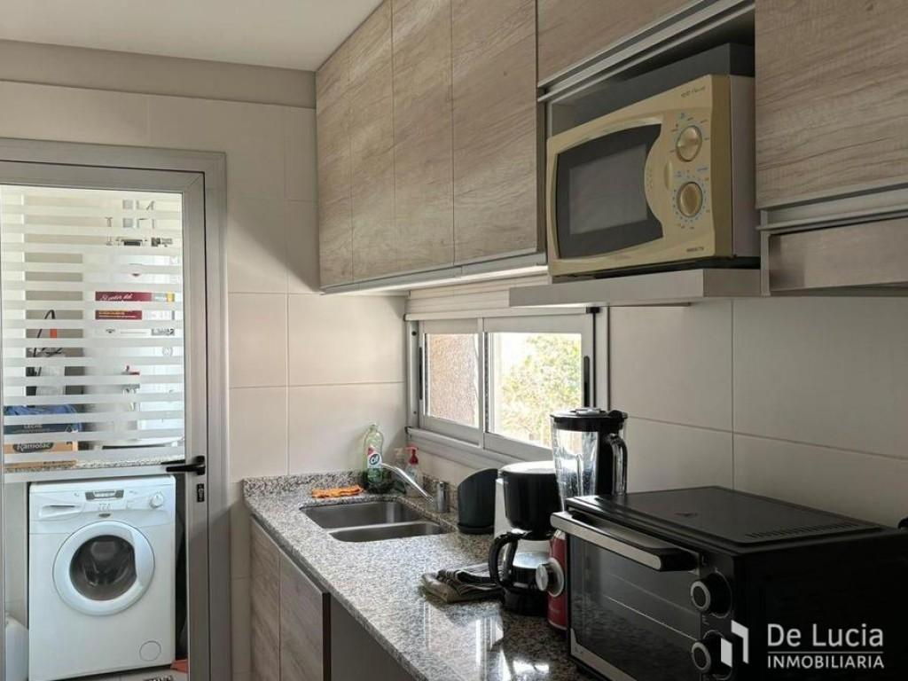 El departamento se ubica contrefrente a calle San Martin, en segundo piso con acceso por escaleras. Consta de living comedor con acceso a balcón. Cocina equipada con muebles de finas terminaciones de alacena y bajomesada. Lavadero con amoblamiento de guardado. Dos dormitorios con acceso a balcón, ambos con placares. Ante baño y baño completo con bañadera.