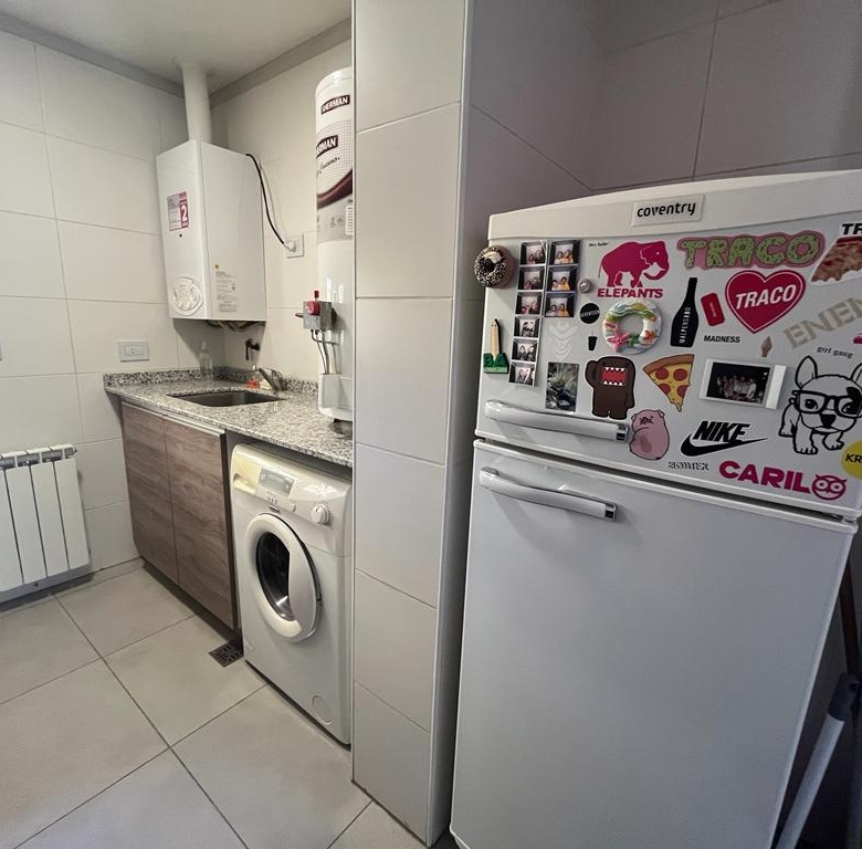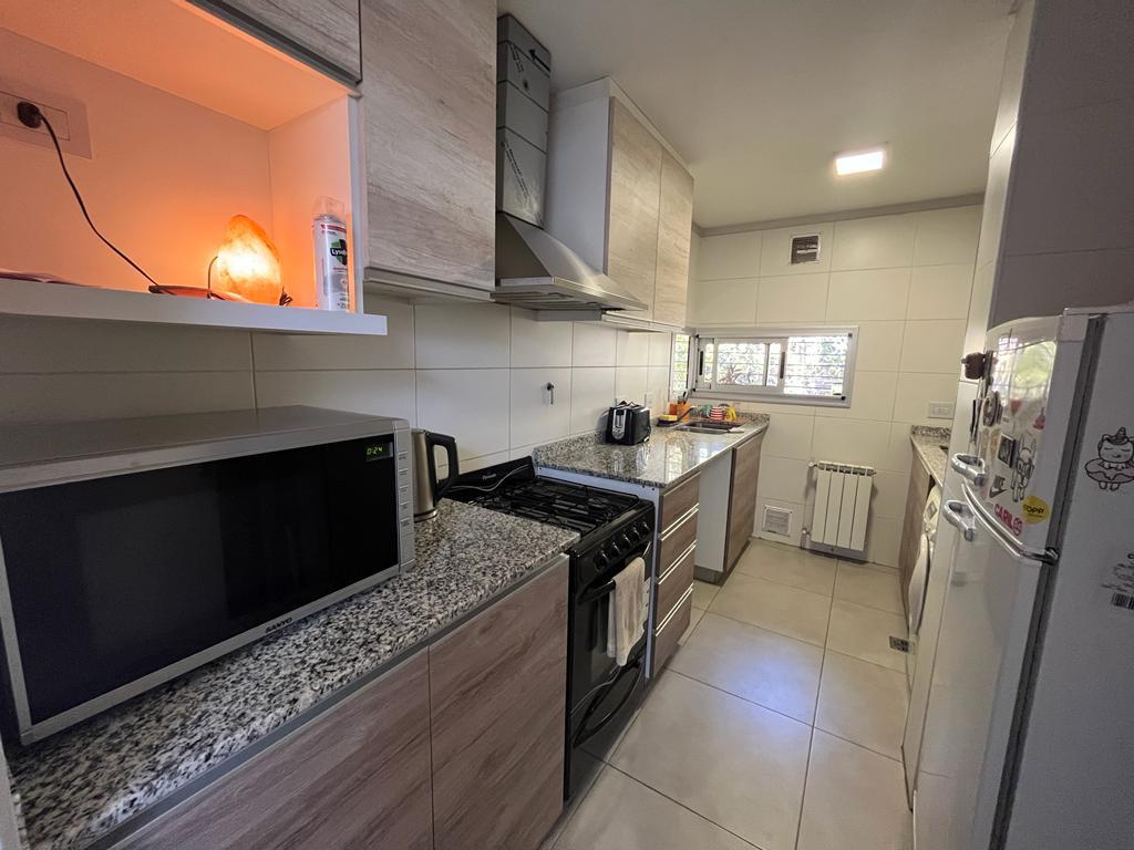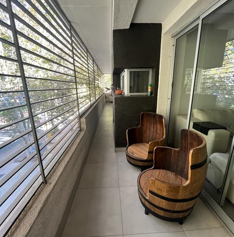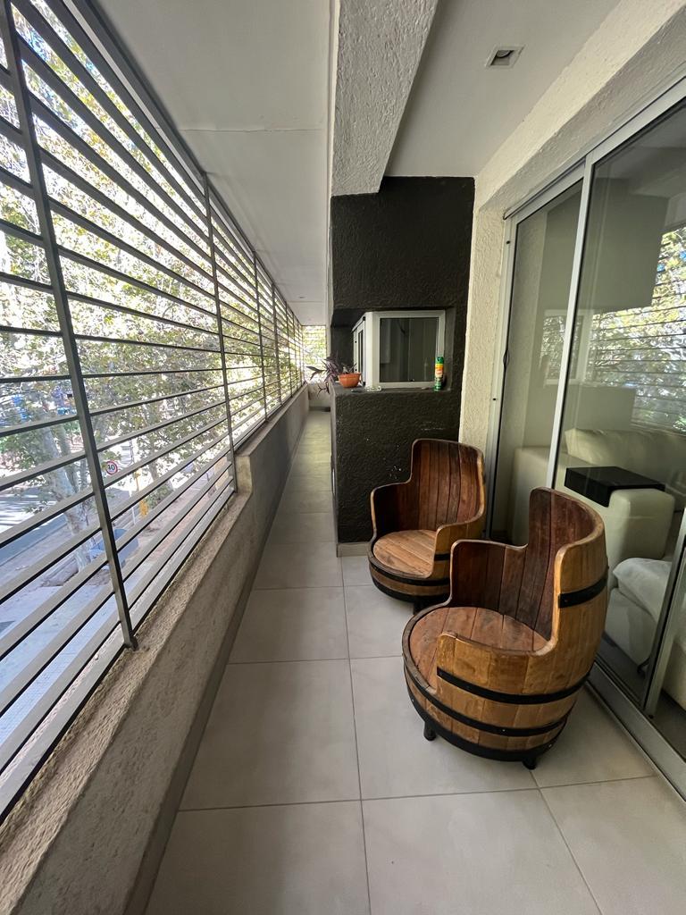 El departamento es frentista, se ubica en el segundo piso con vista hacia el este sobre calle San Martín, posee dos dormitorios con bastos placares, uno de ellos con vestidor, ambos con puertas ventanas con salida hacia el balcón frontal, living/comedor muy amplio y luminoso con salida también al balcón, cocina/lavandería completamente amoblada con lujosas terminaciones en madera y mesadas en granito, baño completo con bañera y ante-baño. Poseen calefacción central por radiadores.