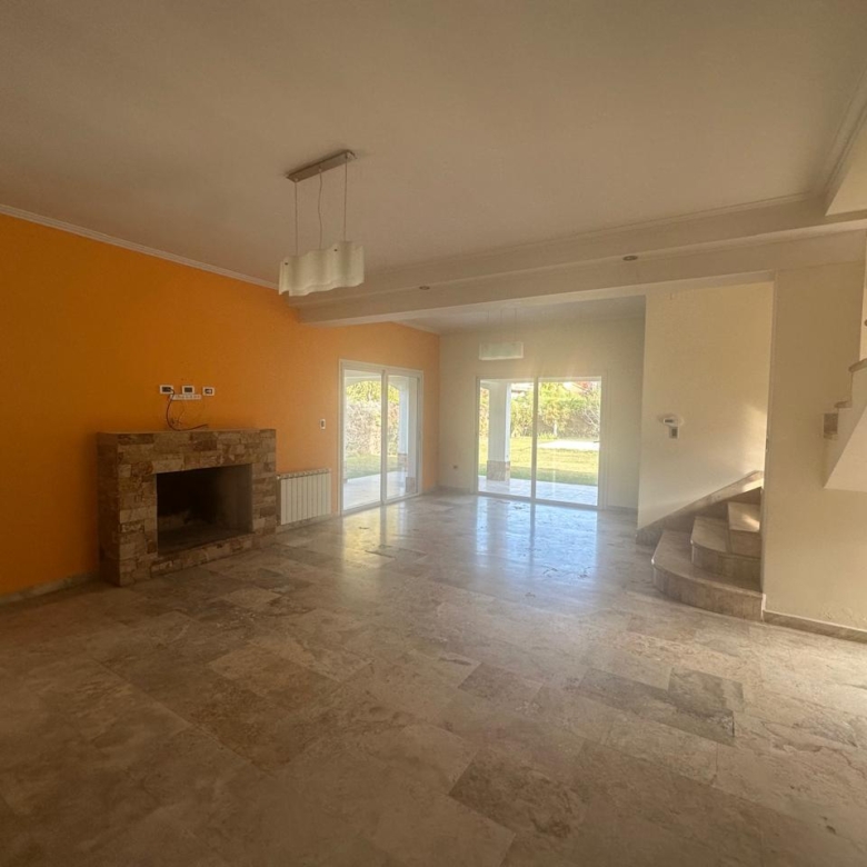 La casa se desarrolla en dos plantas. La planta baja cuenta con sala de estar, baño completo, habitación/escritorio. living comedor con hogar a leña. Cocina con amoblamiento de alacena y bajo mesada. Lavadero independiente. Jardín con pileta equipada. Baño completo para uso exterior. Galería con churrasquera. Habitación para guardado.