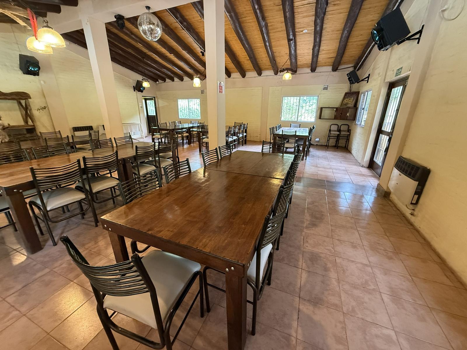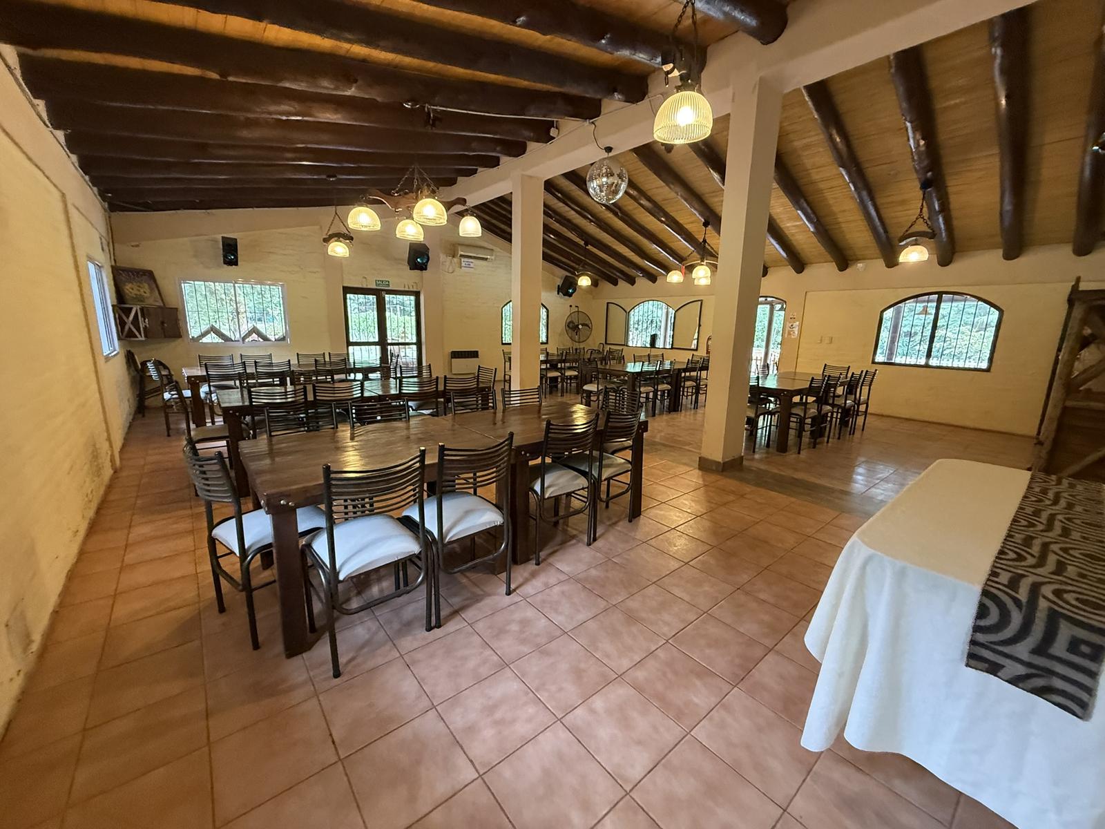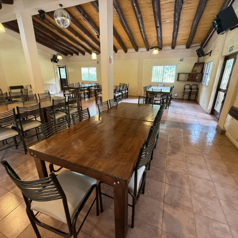 – Un amplio Salón equipado el cual actualmente se encuentra habilitado para eventos, cumpleaños, o eventos sociales varios, etc. el mismo tiene una cocina muy amplia, baños, asador y galerías ( La parte mobiliaria, mesas, sillas, etc. no están incluidas en el Valor)