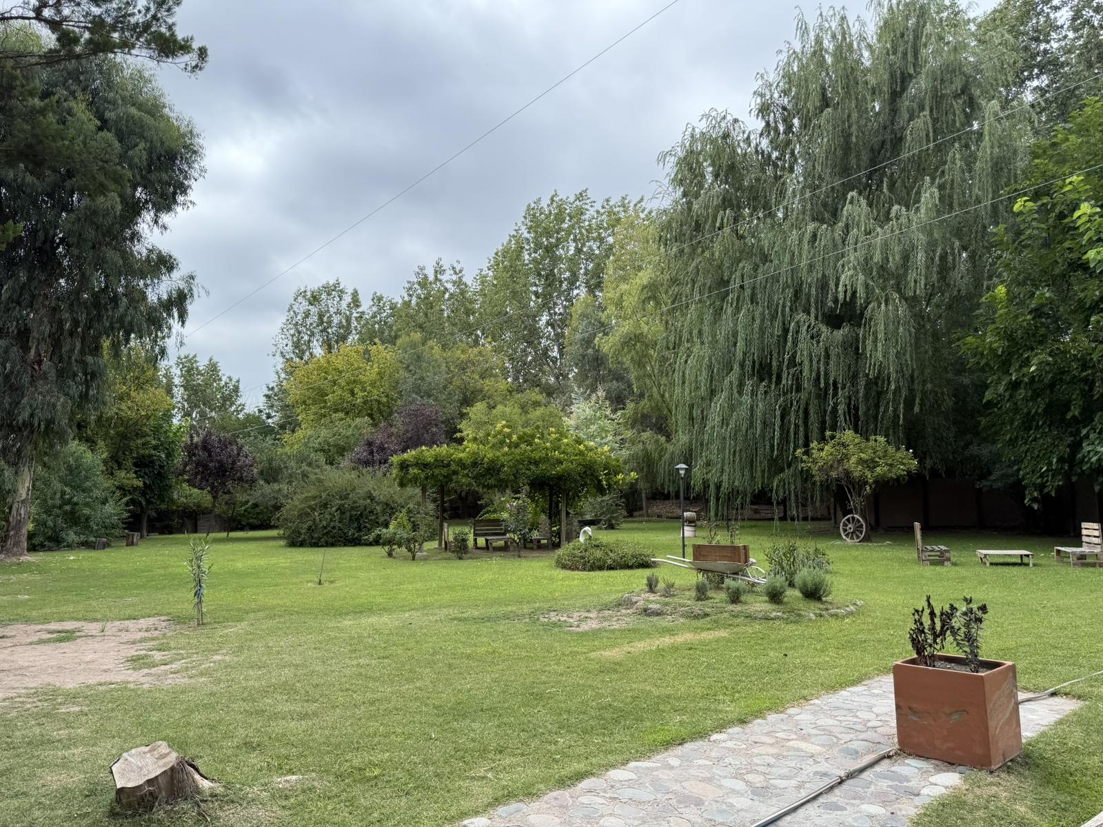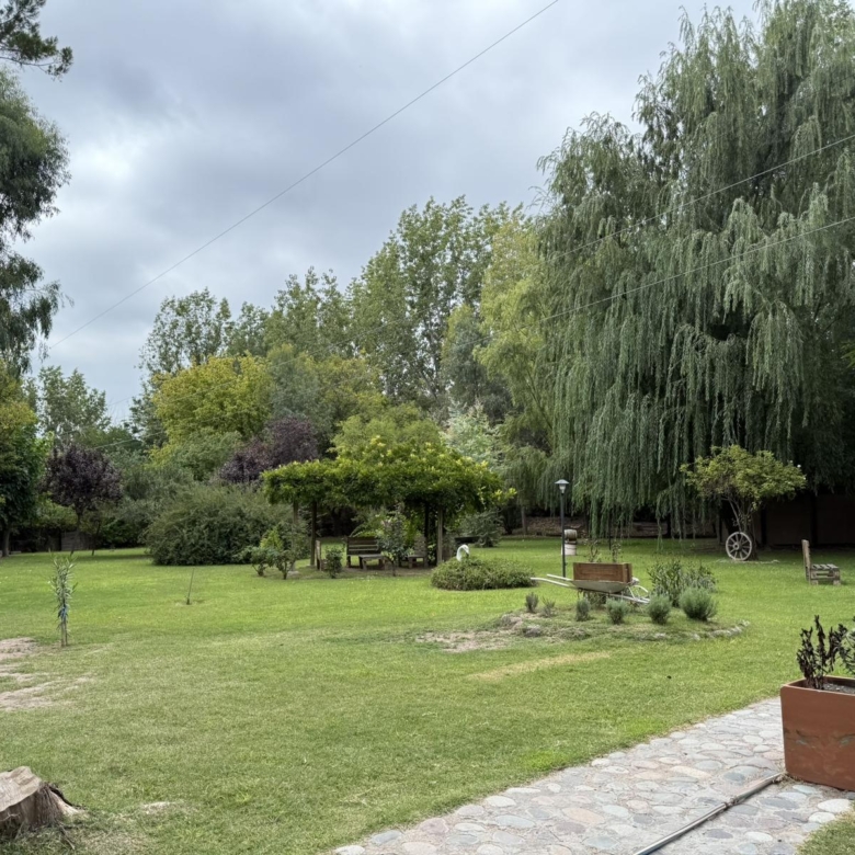 – Parque con añosa forestación, un pequeño viñedo, lo cual hace que la propiedad sea ideal para emprendimientos comerciales. Es destacable también que se encuentra en una zona muy tranquila y de fácil acceso a la ciudad de Mendoza, muy cerca de la ciudad de Luján de Cuyo, Vistalba y Chacras de Coria zona de bodegas y emprendimientos turiscos y gastronómicos varios.